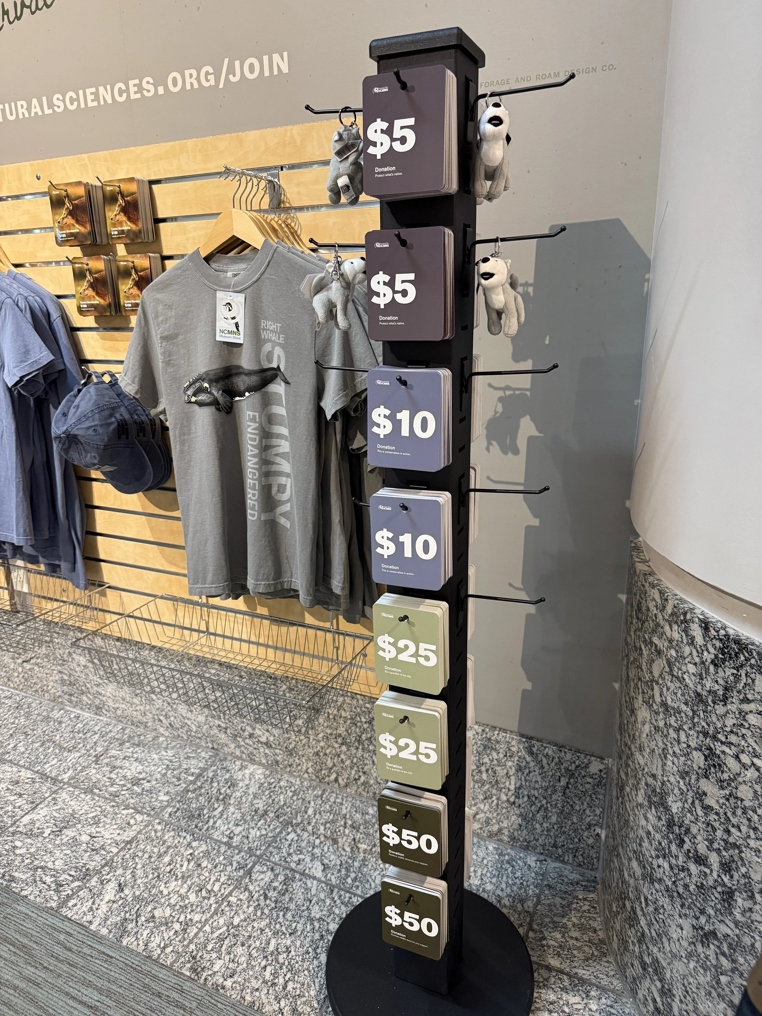 The North Carolina Museum of Natural Sciences largely relies on the support of its members and donors, and needed a faster and more accessible way for museum guests to support the causes the museum contributes to, especially in conservation and education. These Membership and Donation cards provided a simple solution for museum guests looking to support the Museum without the extra hassle of paperwork, and ease of use for museum store staff to reuse these scannable cards to create less waste, and save time.