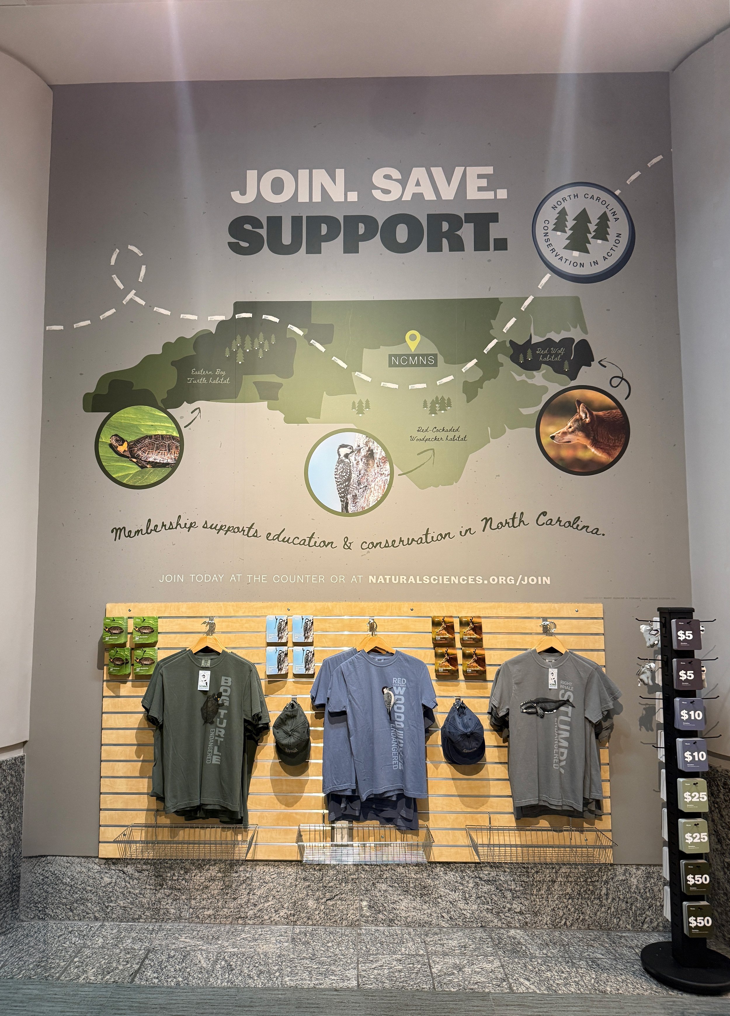 Creating scannable membership & donation cards for museum visitors to support NCMNS’s conservation efforts, featuring photography highlighting endangered wildlife native to North Carolina.