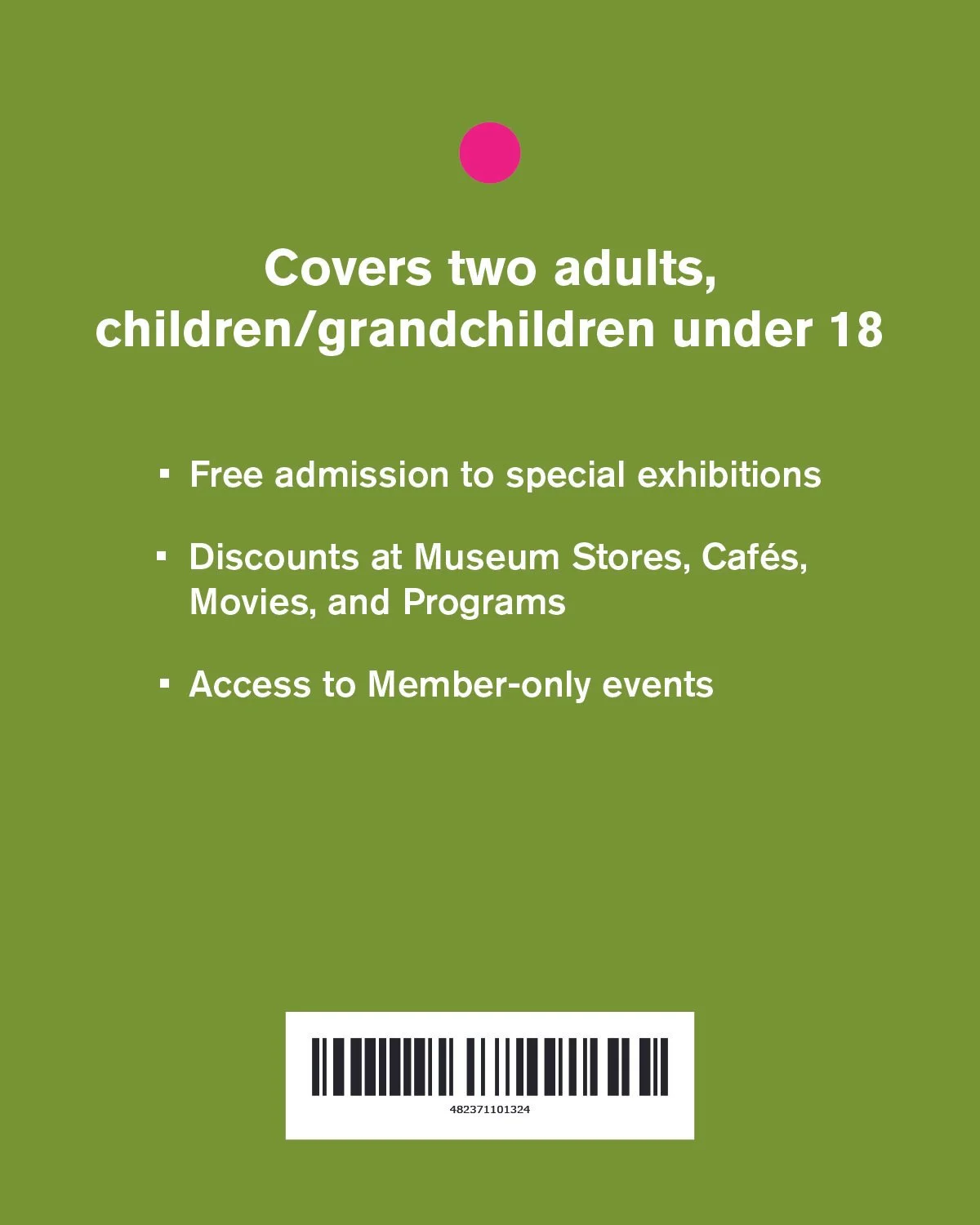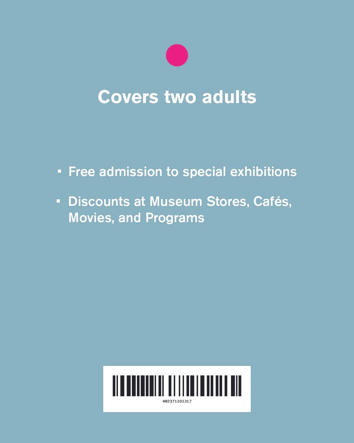 The backs of the cards included scannable barcodes and the coverage each tier level has for groups, and the available opportunties each tier has for admission rates, discounts, and access to other opportunities such as events and museum opportunities.